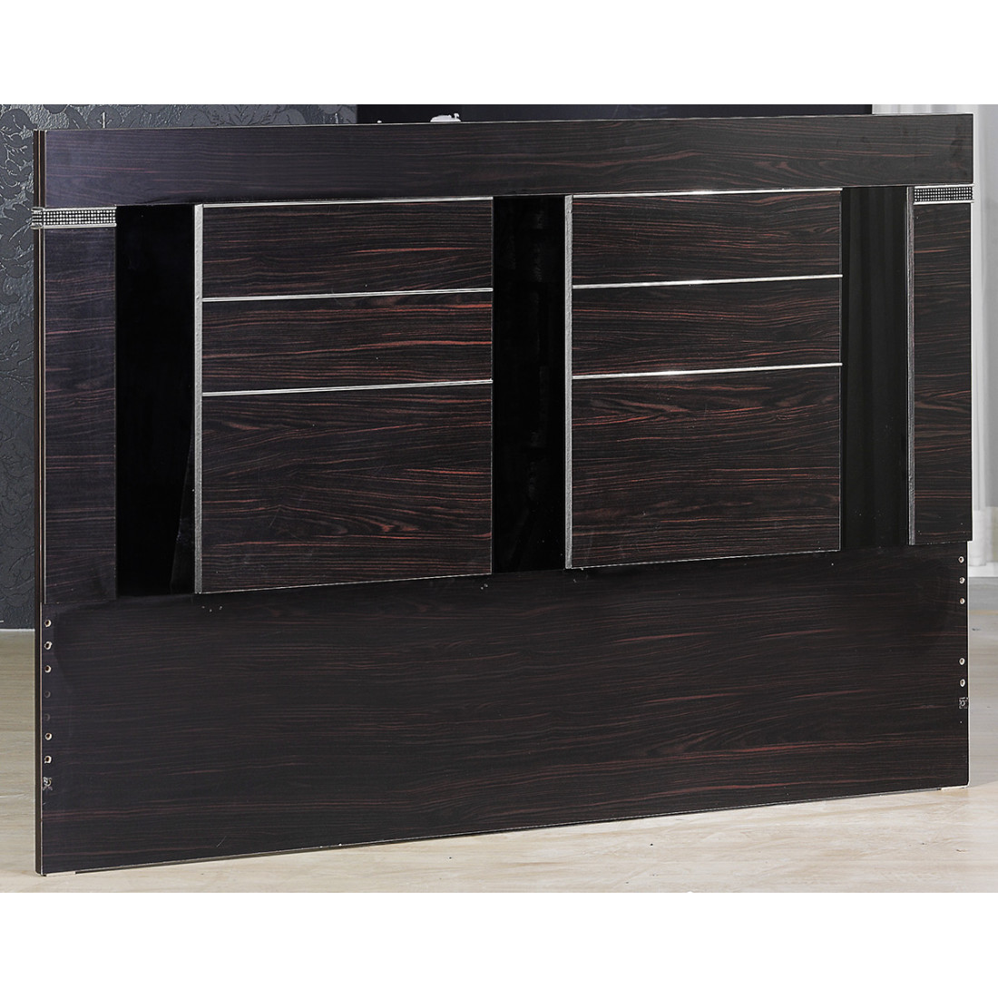 Спинка для кровати MIRA-25 (венге) серии Мира от Беллона выпускается производителем в трех, разных по ширине, размерах. Ею можно украсить базовый комплект Ferro и Active, также представленных на продажу в интернет-магазине Меланго. В оформлении высокой спинки используются стразы и декоративные вставки из глянцевого каленого стекла черного цвета. Купить спинку для кровати можно отдельно, сниженная цена делает модель еще привлекательней.